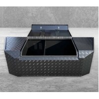 Designed and engineered for low lying, low resistance storage. Manufactured using high quality 2.5mm Aluminum Checker Plate, the T.C Caravan and Trailer Box is made to be durable, strong and secure. The box features three separate storage compartments, a smaller section perfectly suited to a Honda EU22 generator, a central vented gas bottle section that can easily fit 2 x 9kg gas bottles and a larger compartment that is open for you to store anything from your camping cook top to a 40L fridge slide.